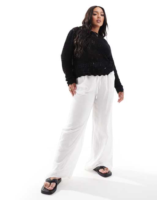 In The Style Plus - Pantalon large à cordon de serrage en lin mélangé - Blanc