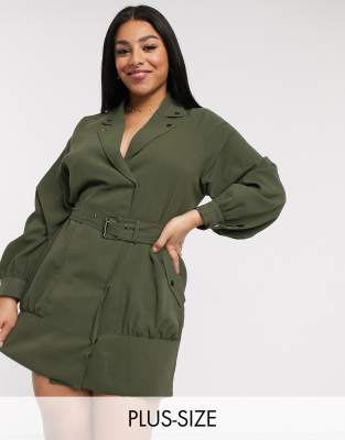 In The Style Plus x Jac Jossa - Robe style motard avec ceinture - Kaki