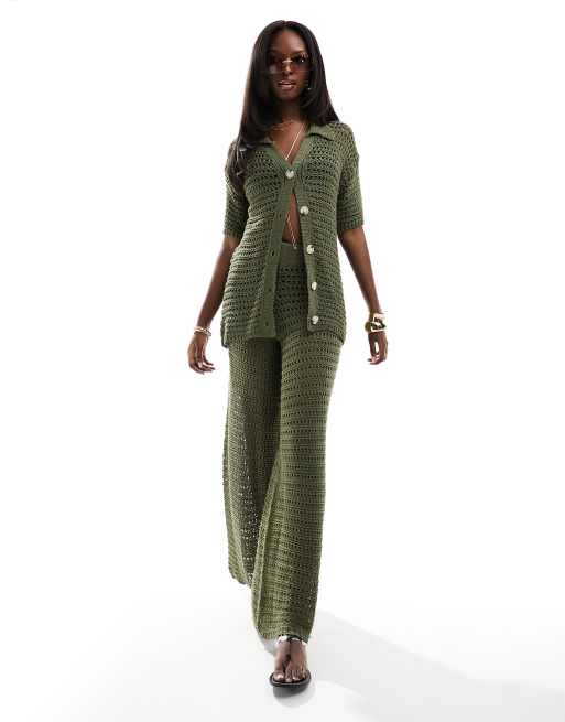 In The Style - Pantalon ample d'ensemble en maille au crochet - Olive
