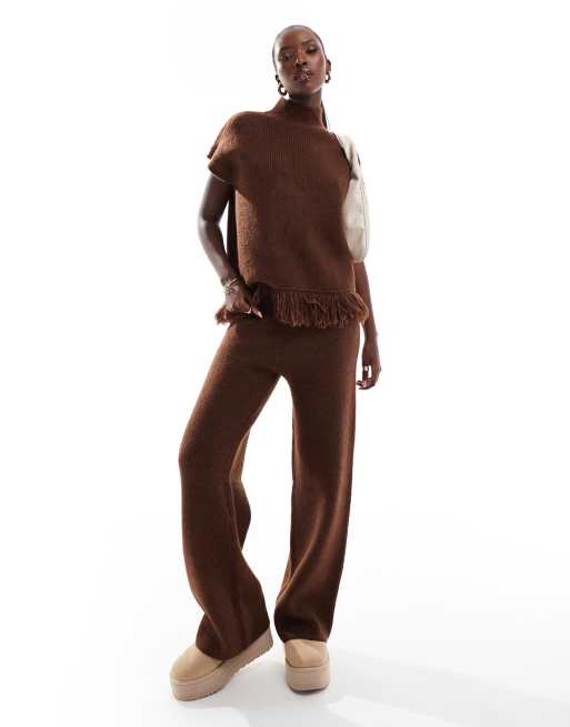 In The Style - Pantalon large d'ensemble en maille - Chocolat