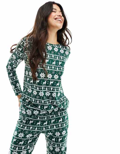 In The Style - Pyjama de Noël avec top à manches longues et pantalon - Vert jacquard