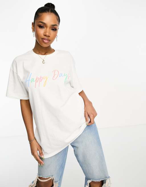 In The Style - T-shirt à imprimé Happy Days - Blanc