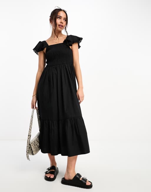 In The Style x Jac Jossa - Robe mi-longue en popeline à volants - Noir