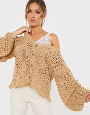 In The Style x Lorna Luxe - Gilet oversize en maille au crochet - Fauve