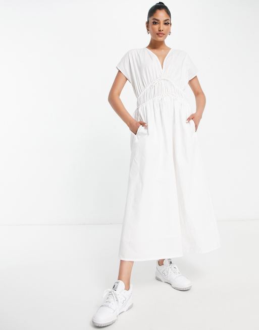 InWear - Ville - Robe mi-longue en coton à corsage noué - Blanc