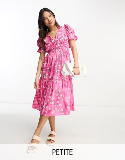 Influence Petite - Robe mi-longue à imprimé vichy et fleurs - Rose