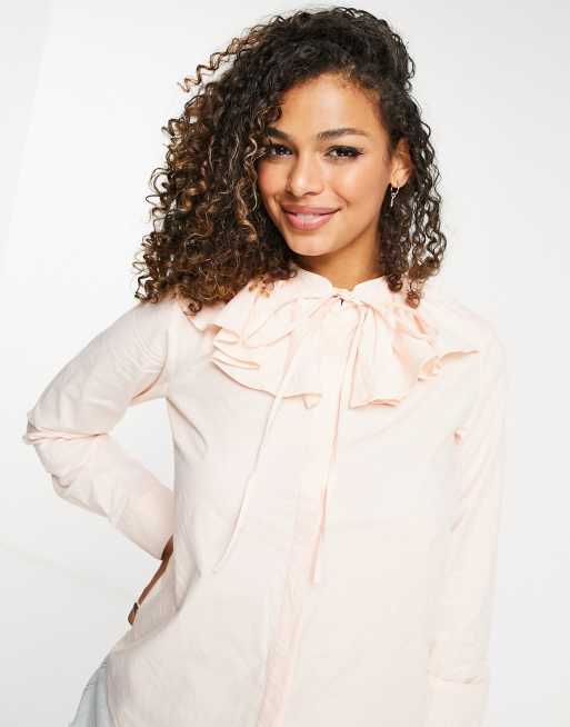 Influence - Blouse à col volanté en popeline de coton - Pêche