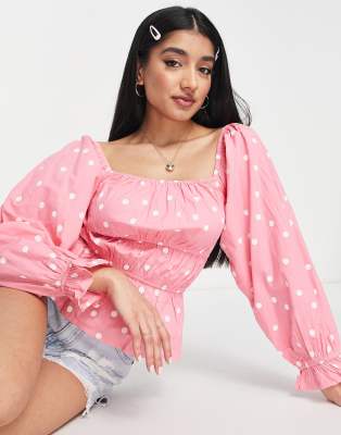Influence - Blouse en coton à encolure carrée - Rose à pois