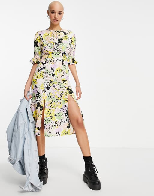 Influence - Robe rétro à grosses fleurs avec dos ouvert et fente sur le devant