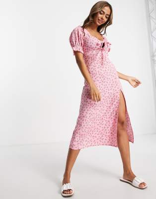 Influence - Robe rétro mi-longue à manches bouffantes - Rose imprimé fleuri