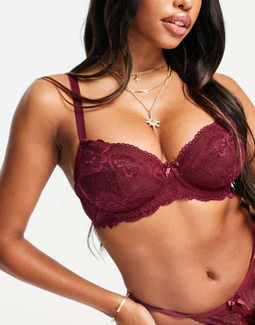 Ivory Rose - Poitrines généreuses - Soutien-gorge balconnet à armatures non rembourré en dentelle - Bordeaux