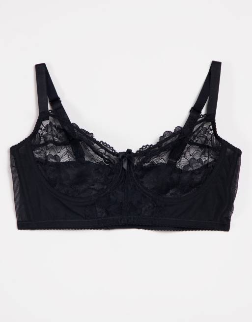 Ivory Rose - Poitrines généreuses - Soutien-gorge bustier en dentelle et tulle - Noir