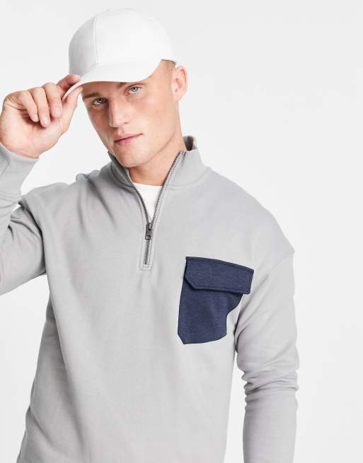 Jack & Jones - Core - Sweat à col zippé et poche contrastante - Gris