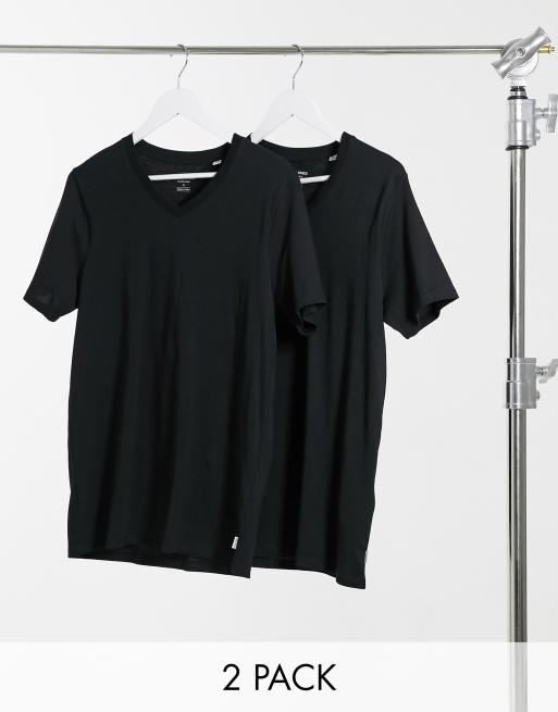 Jack & Jones - Essentials - Lot de 2 t-shirts col V ajustés - Noir
