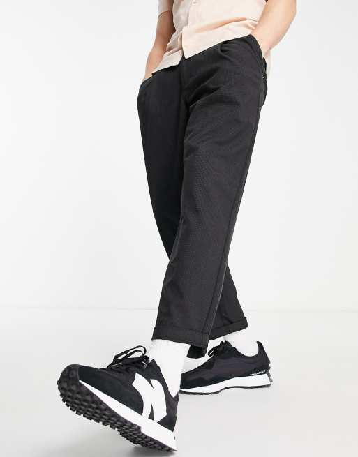Jack & Jones Intelligence - Pantalon large raccourci à motif pied-de-poule - Anthracite