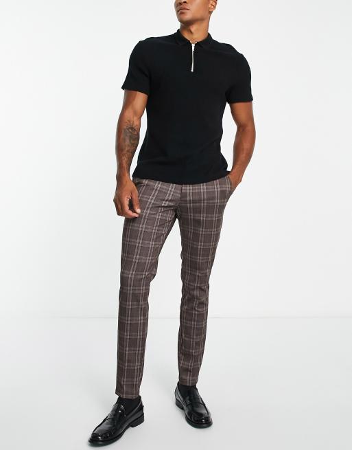 Jack & Jones Intelligence - Pantalon slim élégant en jersey à carreaux - Marron