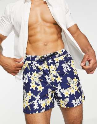 Jack & Jones Intelligence - Short de bain à fleurs en polyester mélangé - Bleu - MBLUE