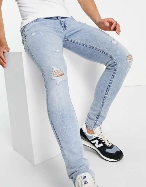 Jack & Jones Intelligence - Tom - Jean super skinny - Bleu clair délavé