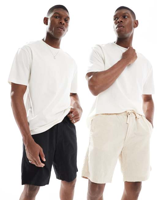 Jack & Jones - Lot de 2 shorts en lin mélangé - Noir et crème