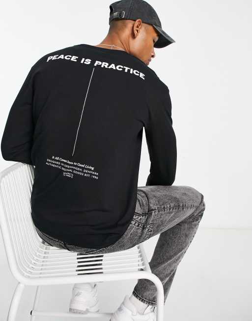 Jack & Jones Originals - T-shirt oversize à manches longues avec imprimé symbole de la paix au dos - Noir