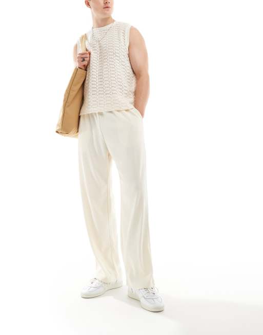 Jack & Jones - Pantalon large en tissu plissé - Écru