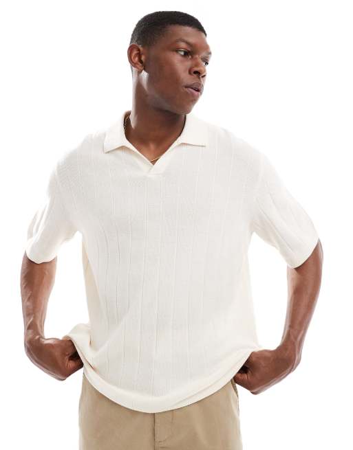 Jack & Jones - Polo côtelé à décolleté - Crème