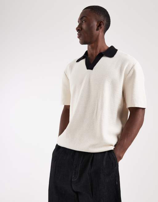 Jack & Jones - Polo en maille à col ouvert contrastant - Blanc cassé