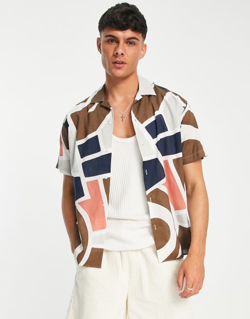 Jack & Jones Premium - Chemise à manches courtes avec col à revers et imprimé abstrait - Marron
