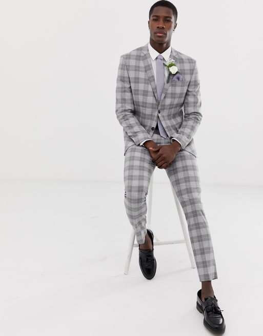 Jack & Jones- Premium - Costume ajusté - Carreaux gris