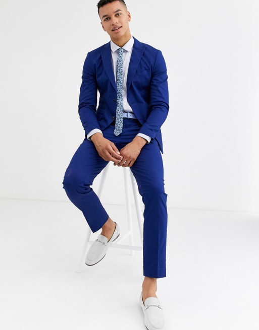 Jack & Jones - Premium - Costume coupe slim en coton stretch - Bleu