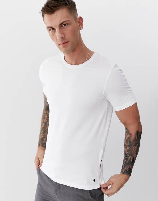Jack & Jones Premium - T-shirt avec fermeture éclair sur le côté - Blanc