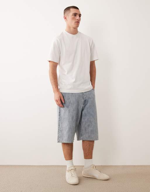 Jack & Jones - Ron - Bermuda en jean surpiqué - Bleu clair délavé