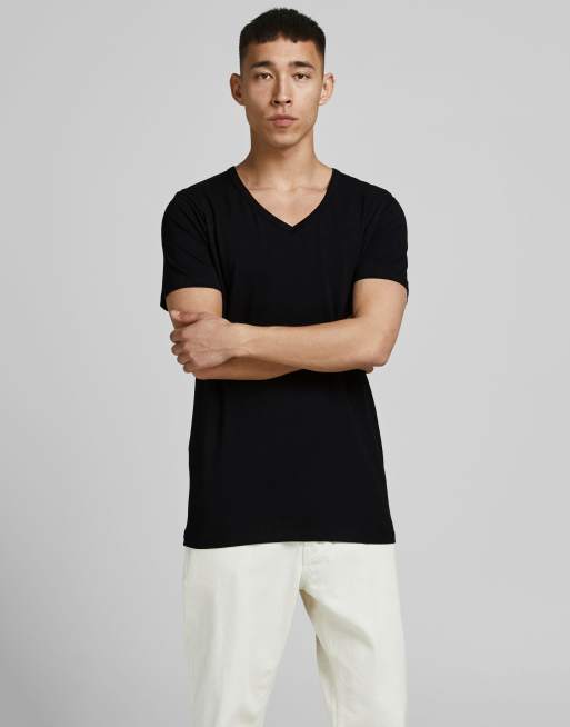 Jack & Jones - T-shirt col en V à manches courtes - Noir