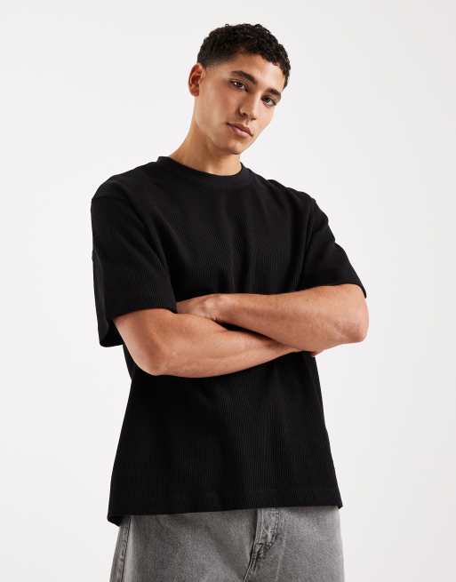 Jack & Jones - T-shirt côtelé oversize - Noir