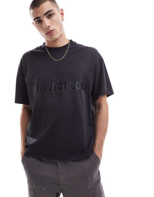 Jack & Jones - T-shirt crop top oversize à imprimé Project Core - Noir délavé