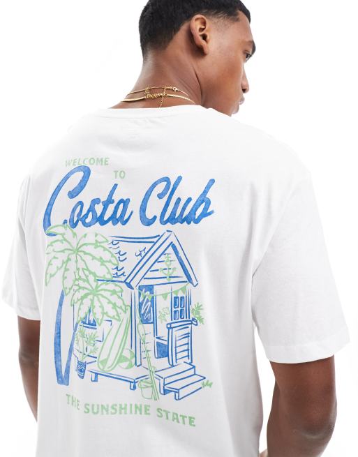 Jack & Jones - T-shirt oversize avec imprimé Costa Club - Blanc