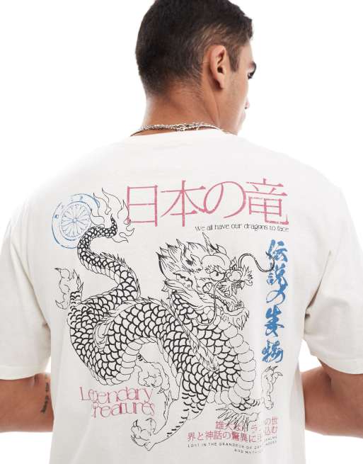 Jack & Jones - T-shirt oversize avec imprimé dragon - Blanc cassé