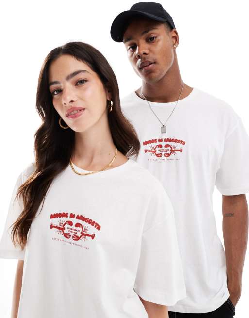 Jack & Jones - T-shirt oversize avec imprimé homard au dos - Blanc