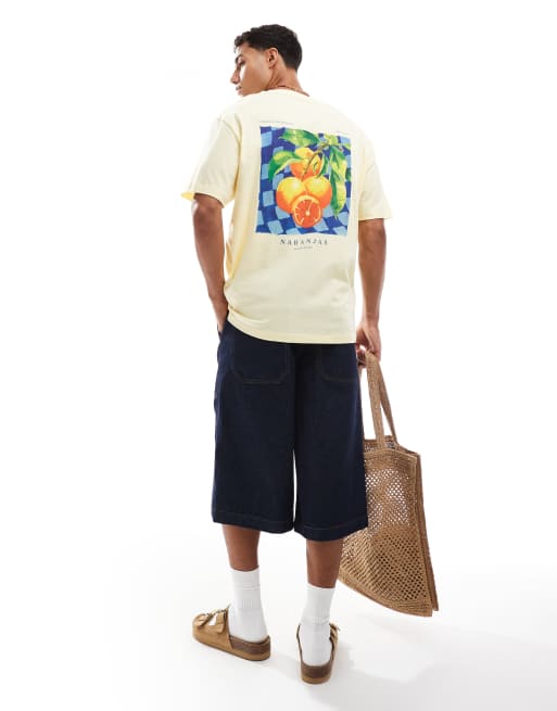 Jack & Jones - T-shirt oversize avec imprimé oranges au dos - Jaune