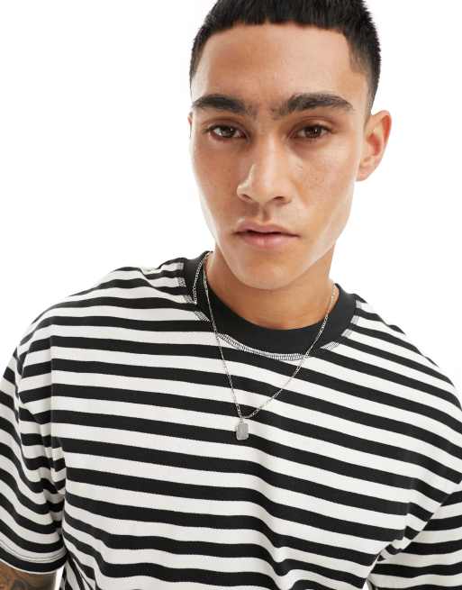 Jack & Jones - T-shirt oversize épais à rayures - Noir