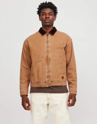 Jack & Jones - Veste de travail en jean à col en velours côtelé - Fauve
