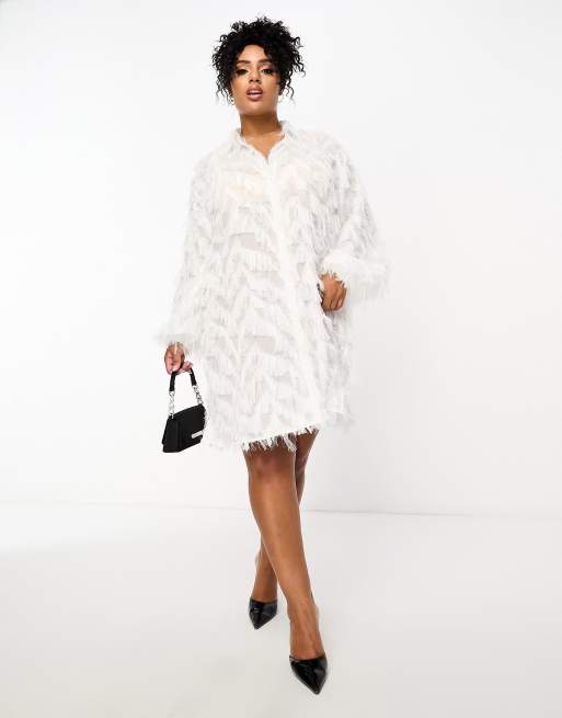 Jaded Rose Plus - Robe chemise courte en similicuir à plumes fantaisie - Ivoire