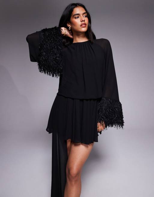 Jaded Rose - Robe courte effet drapé en fausse fourrure - Noir