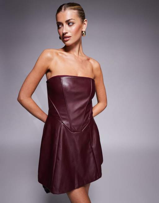 Jaded Rose - Robe structurée courte en PU - Bordeaux