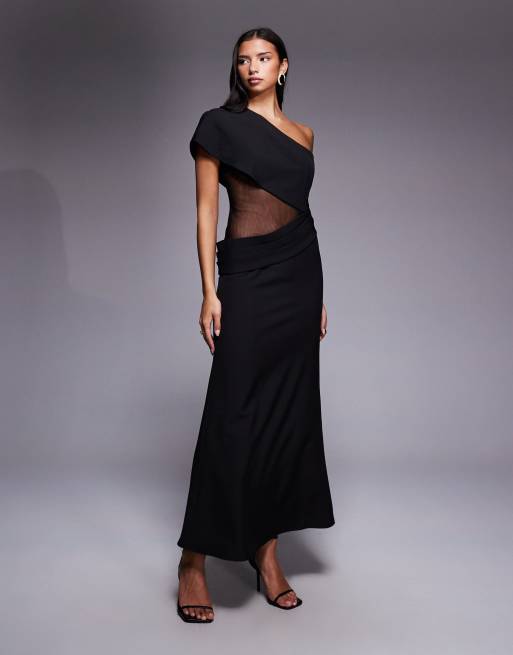Jarlo - Darcy - Robe longue asymétrique à empiècements en tulle et ceinture ruban - Noir