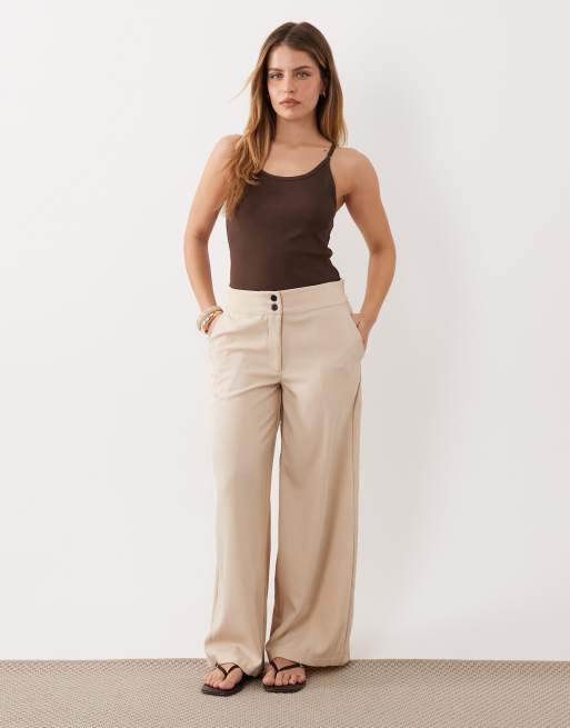 JDY Petite - Pantalon large à taille haute - Beige