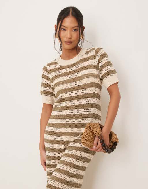JDY Petite - Robe mi-longue au crochet à rayures - Beige
