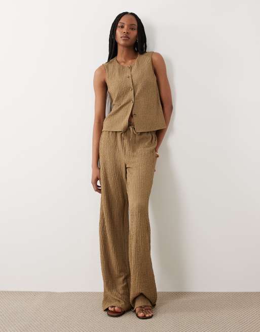 JDY Tall - Ensemble texturé avec pantalon ajusté et gilet de tailleur - Marron