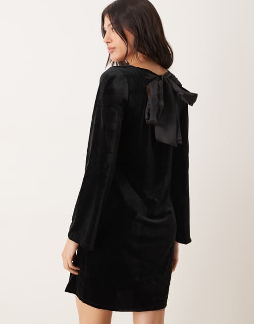 JDY Tall - Robe courte en velours avec nœud dans le dos - Noir