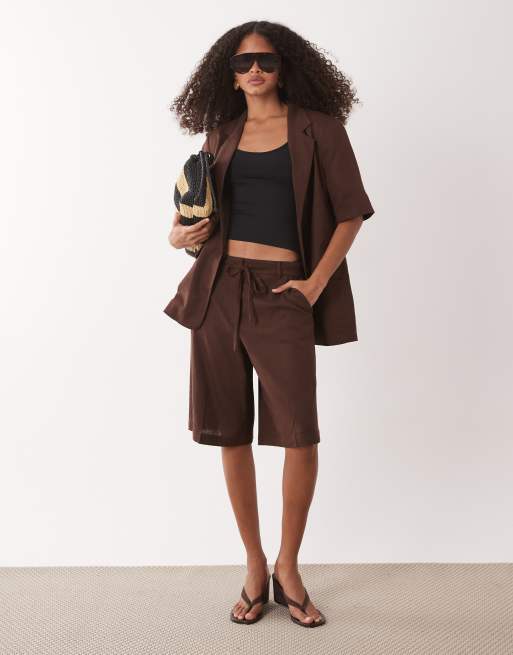 JDY - Bermuda d'ensemble ajusté en lin mélangé - Marron